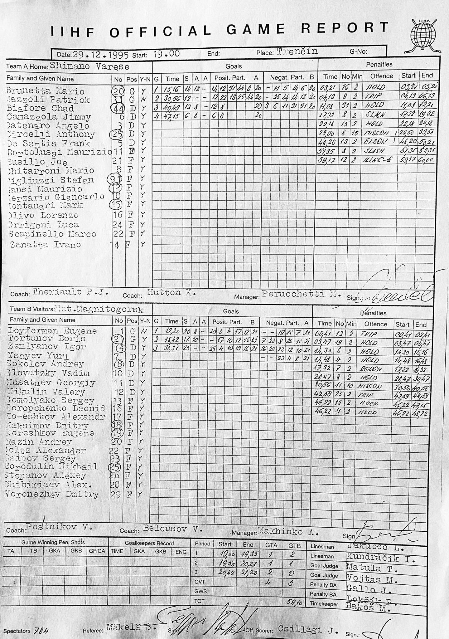 Как можно было спутать 12-й номер с 14-м – не совсем понятно. Десять лет назад, когда «Металлург» в финале Кубка Гагарина встречался со «Львом», мне довелось пообщаться с Айваном на тему его хет-трика в ворота «Металлурга». Он хорошо помнил тот матч, но совсем не помнил того, что сделал хет-трик в ворота магнитогорской команды, чем меня реально удивил. Спустя почти тридцать лет удалось выяснить, что Занатта действительно не забивал «Металлургу» три шайбы в финале Кубка Федерации 1995 года. А счёт, кстати, в той игре открыл Андрей Разин, который играл за «Металлург» под 20-м номером, потому что 7-й номер был занят Юрием Исаевым.